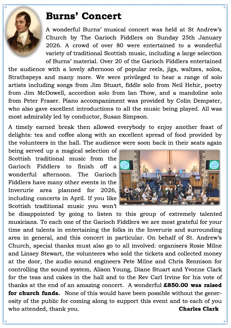 14th February 2026—Inverurie Music Concert